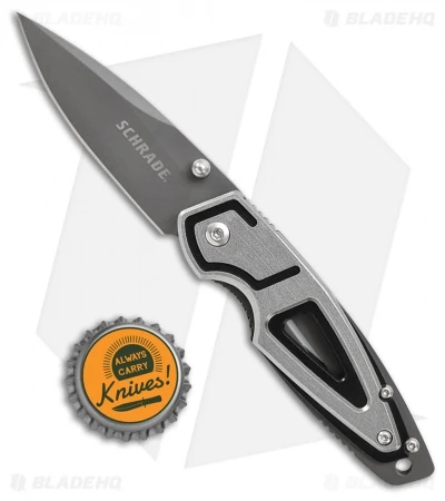 This Schrade SCH224 folder offers a unique layered aluminum handle and a gray coated blade. The handle consists of a stainless steel frame with layered aluminum scales in a gunmetal gray finish. The stainless steel blade comes with a gray coating and a plain edge. A stainless steel pocket clip completes the EDC design.