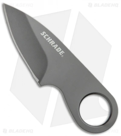 Get a compact EDC companion with the Schrade Pocket neck knife. This little guy is built tough to take on big cutting jobs. It has a high carbon steel blade with a durable gray coating that resists wear and corrosion. A finger hole at the base improves grip and makes it easy to remove from the sheath. This model has a molded polymer sheath with a built in money/credit card clip. Take your EDC game to the next level with the Schrade Pocket neck knife.