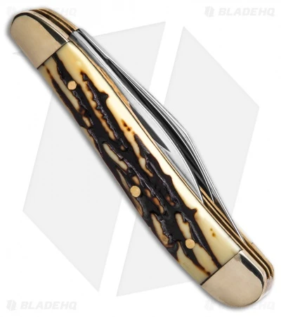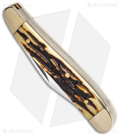 - Slip joint pocket knife with imitation stag handle.
